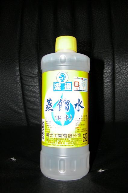 這一瓶在藥局買應該買的到, 通常用來加汽車電瓶的水也是這種水.
