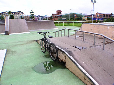 在場地裡有BMX、滑板及直排輪常用的地形,對我們而言,就滑一滑感受一下BMX的感覺就好,在上頭做有速度的動作,不是攀岩車的強項!!