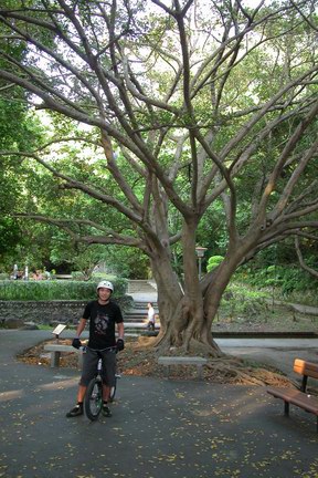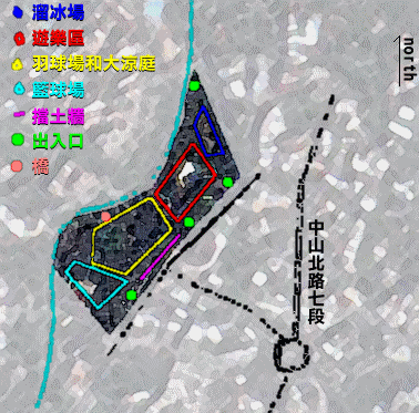 天母公園位於中山北路最北段也就是第七段的地方, 只要走到最後一個圓環左轉即可抵達. 此公園是延著河流的旁邊, 且樹木很多, 相當適合大太陽夏天的時節在此處練車. 這個公園唯一的幾個缺點就是, 附近停車比較不方便(如果是汽車的話), 也沒有便利商店, 因此口渴除了自備飲料外, 可能就要走到中山北路附近才能找的到.