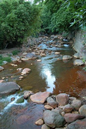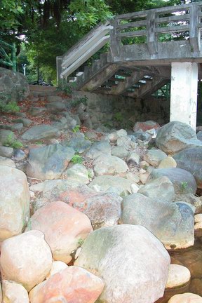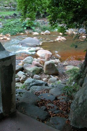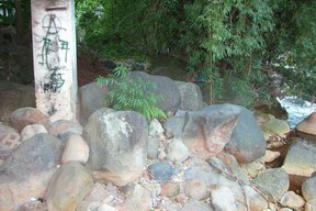在接近兩棵大榕數旁有個小平台, 右方有處可走下河流的地方, 此處有些河床上的石頭, 也是可以在此處練習.