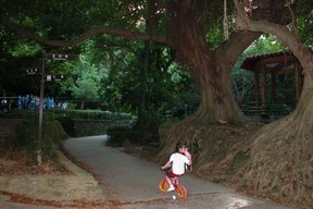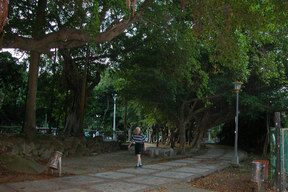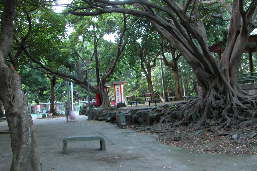 比較特別的地方就是兩棵大榕樹, 它的樹根有一大部份都曝露在外處, 且是跟著地勢的起伏,