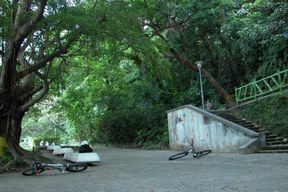 是由水泥建成的, 對於高度夠的車友來說, 這裡可以練習踩跳或側跳等動作.
