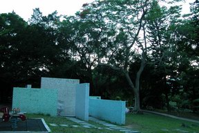 擋土牆位於大涼庭的靠山面, 一直延伸到靠近最南端的出入口(也是主要出入口), 它的平均高度約是110~120,
