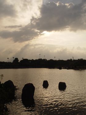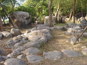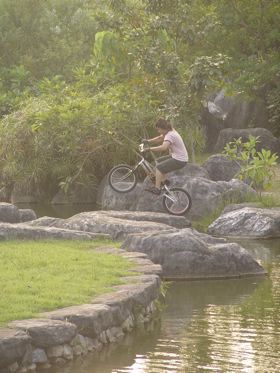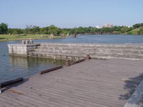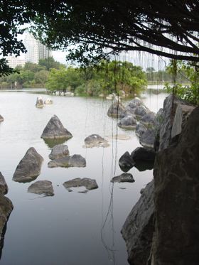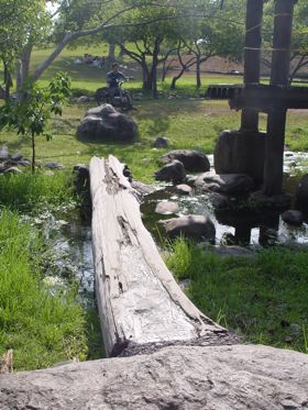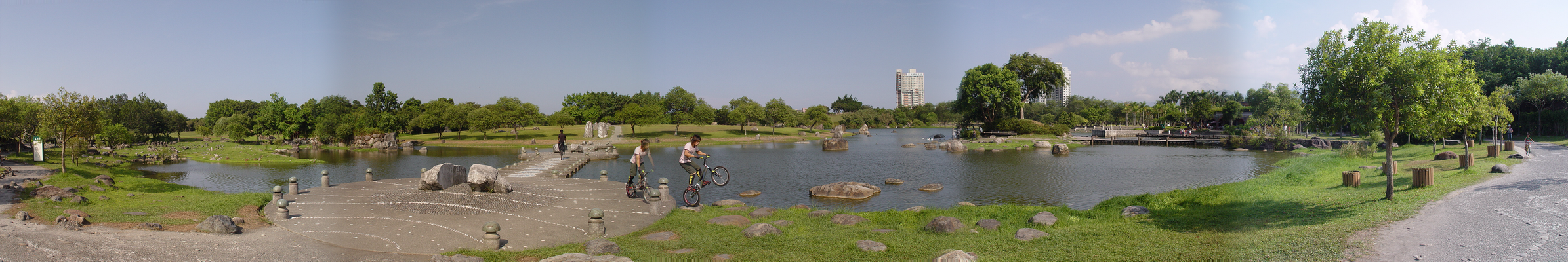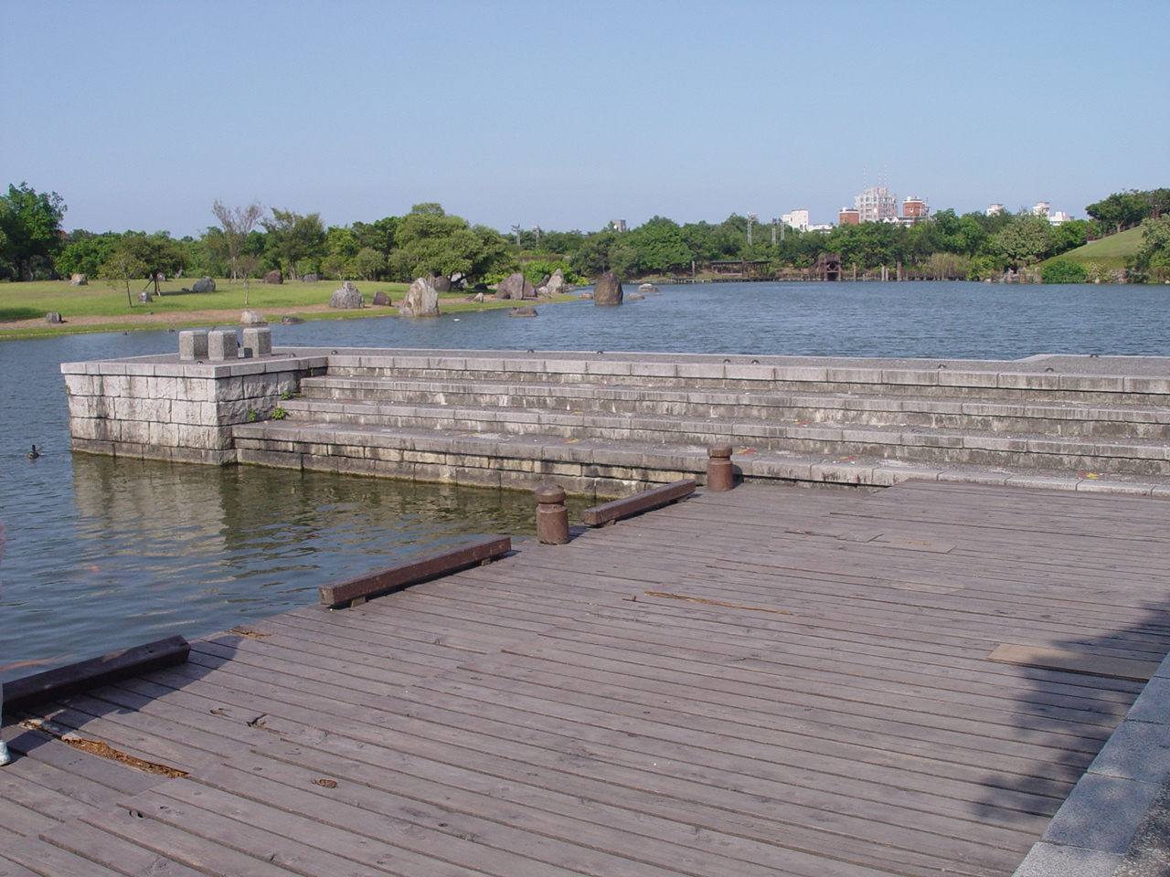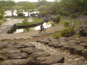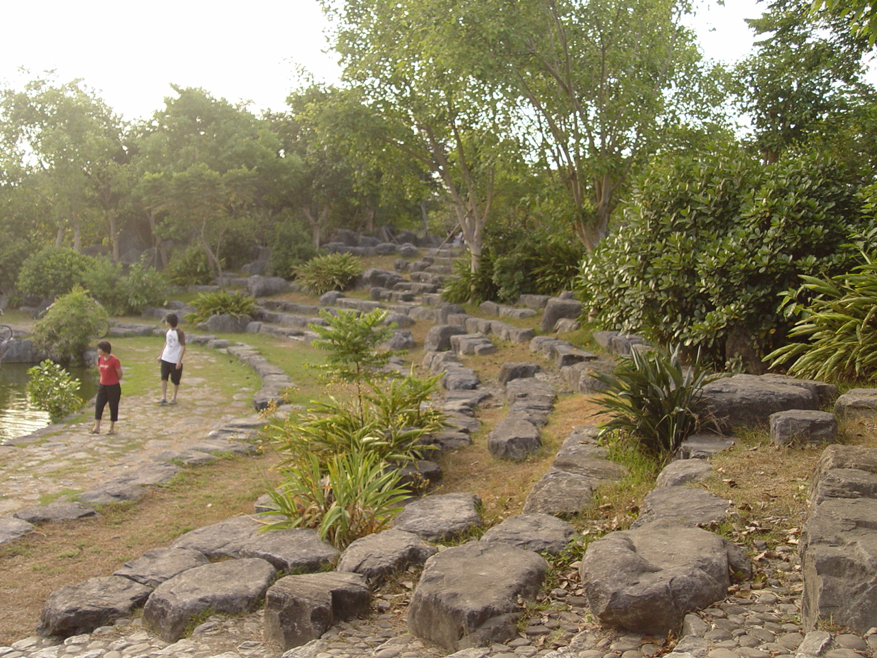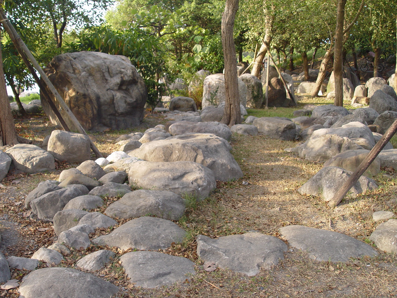 沿著湖邊順時針繞去會看到一區造景,主要地形是草地還有很淺的水混合雜亂的石頭。