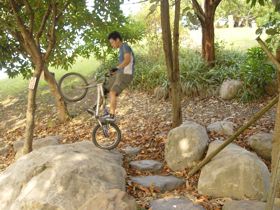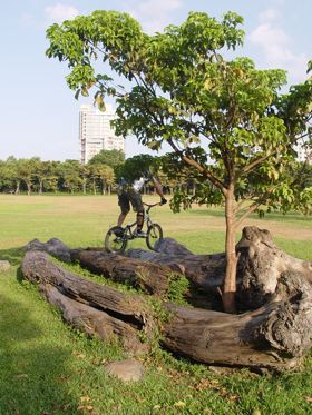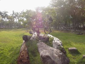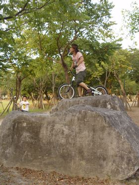 這裡是園區裡面少數的建築物,有販簡單的賣食物飲料,也有出租腳踏車。旁邊有簡單的階梯跟障礙物,可以說是這裡唯一適合街道攀岩的地方。