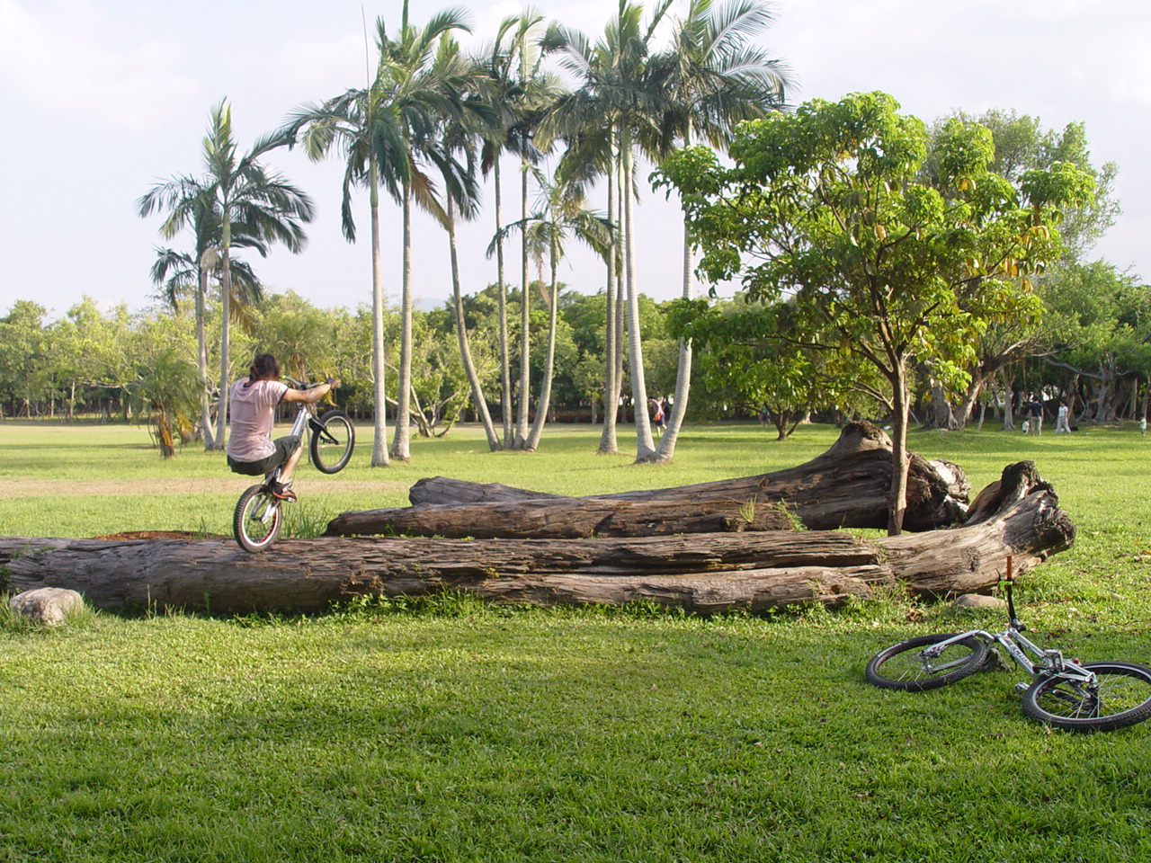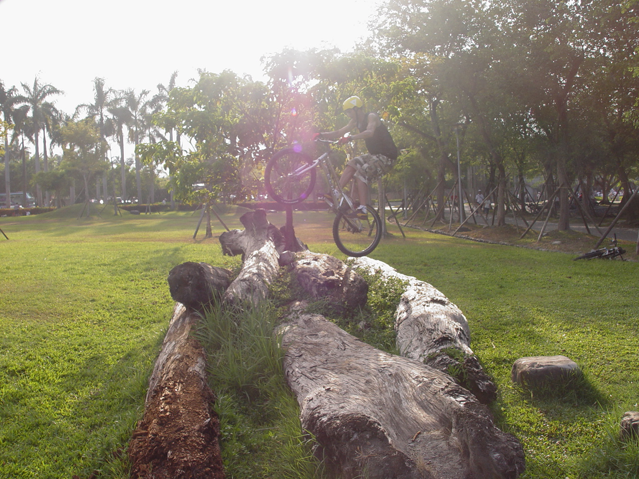 沿著湖邊逆時針繞去會看到右邊大片草地上有一推原木。