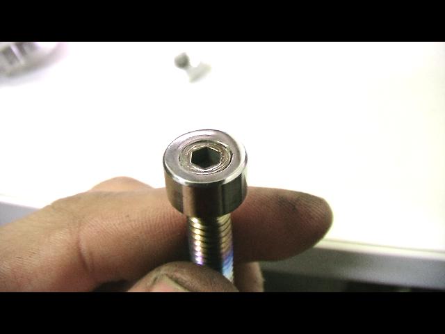 以ㄌㄚ(這地方 我沒攻牙攻全部 有一半是用螺絲催進去的 所以不用擔心他放鬆時會掉出來 我還轉到ㄅㄧㄚㄅㄧㄚ響勒。。。)!!!但是由於鈦真是難鑽到拷貝 所以他偏了。。而且還偏了不少