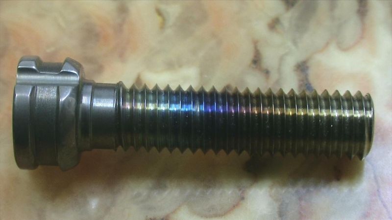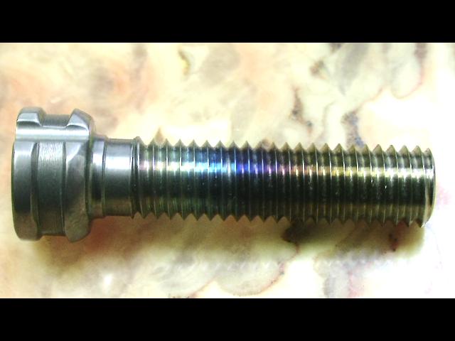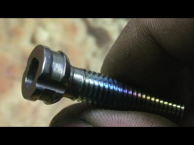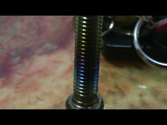 由於上一顆螺絲 龍頭拉桿的牙 記錯了!!!!!所以昨天又車了一支 這次沒有再用複合式材料了!!!全鈦MUHAHA...而且烤的更漂亮了!!!這次是從"頭"開始烤 以下是成品 總重8G