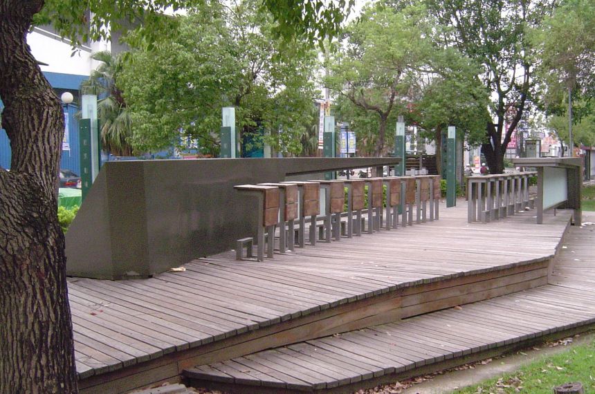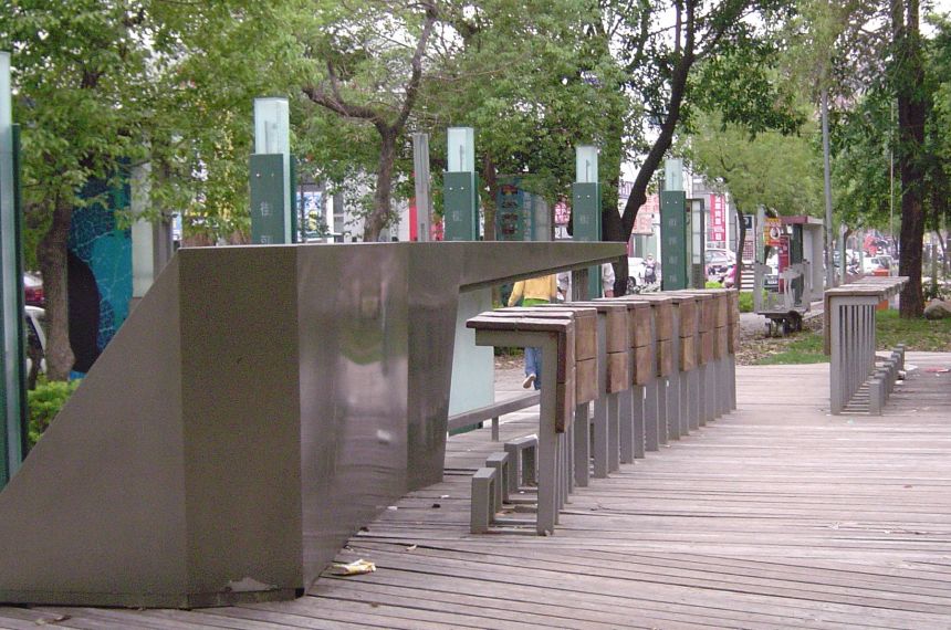 電筒都用木柵欄圍起來防止小狗尿尿跟有人跳車