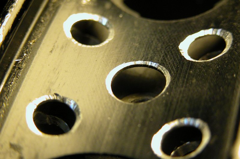 因為若你要鑽過兩層, 那在內邊勢必會留下銳利的屑屑角, 因此你就可以使用大鑽頭來修邊.