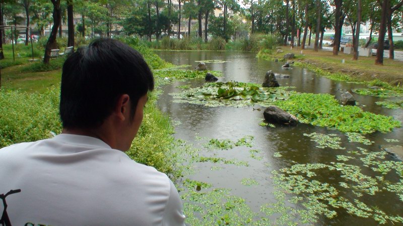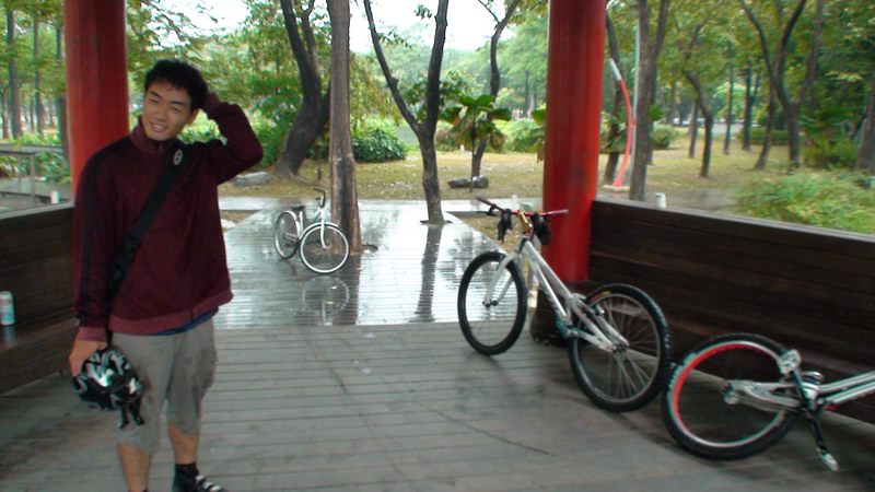 然後我們在濛濛細雨中, 騎機車載著腳踏車努力的殺到鳳山老人公園, 那邊已經有一個非常賣力的冠宏在那邊等候多時.