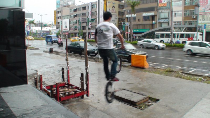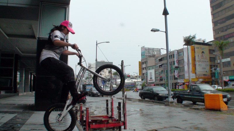 後來等雨小一點, 就到了旁邊的石頭區去勉強在雨天騎了一下.