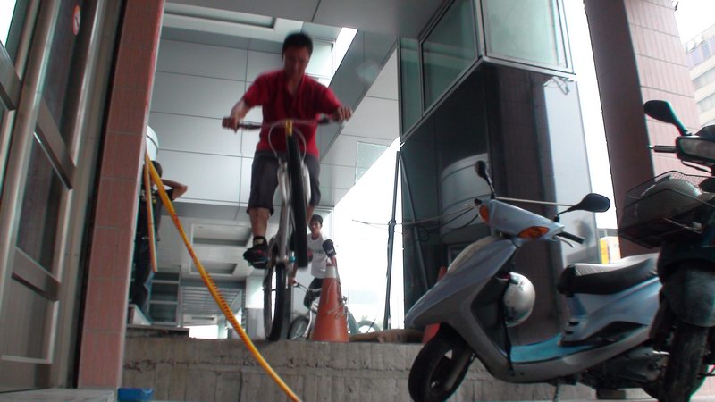 沒啦, 那不是故意的, 因為想說輪胎胎壓不夠, 跳到前面的細牆會爆胎, 如果直接落到平地又太low.
