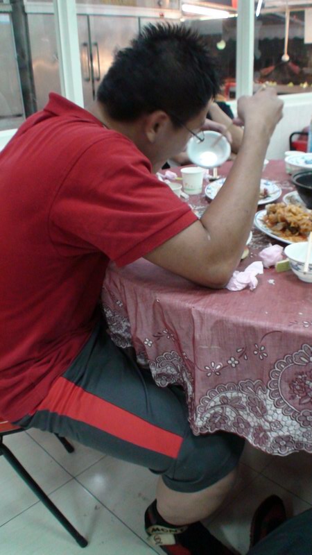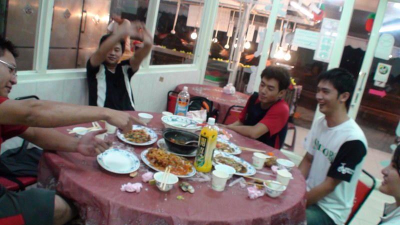 好多好多. 省略不想寫了. 總之就是到旗津後那邊天氣好很多, 我們騎了前段的噴水池人工地形後大家肚子餓了, 就找個地方吃炒菜去...