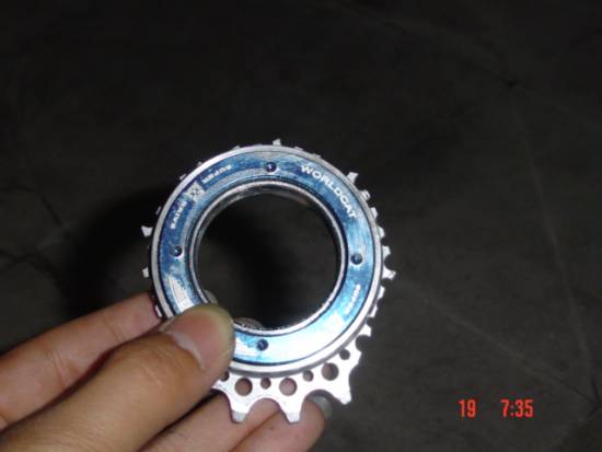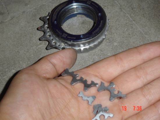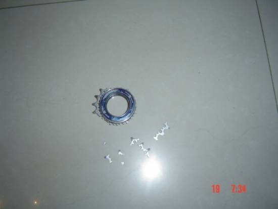 兄弟们(大哥哥们)!越说越跑题了!说明一下:这飞轮使用没超过3个月,我~~~14岁;大陆买500RMB多,不知台湾的价钱。在小区上了大概70cm大台阶。下来的时候发现轮子卡住了!就进行了检查结果发现~~~~~~~~。