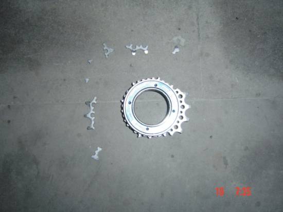 世界猫!世界名牌?你的其他产品我没用过,但、、、、、、飞轮!他的驱动零件这么差!你这只猫还跑得动?自己躺着吧!幸好人没出事。齿齿掉下来全成渣渣了!只找到几块。