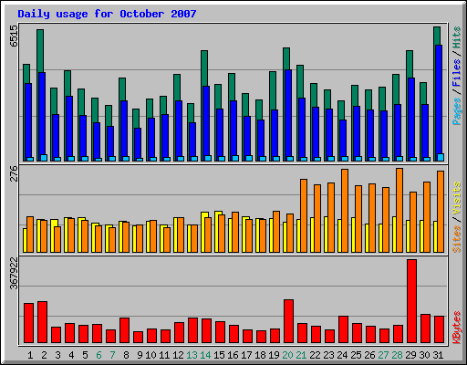 | Day | Hits | Files | Pages | Visits | Sites | KBytes | ||||||