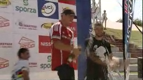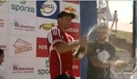影片的後面是前三名噴香檳的時刻, 人手一瓶, 可是Gilles躲在旁邊沒有噴它.