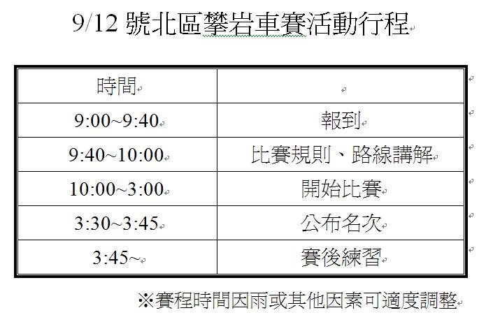 RE: 9/5攀岩車比賽又來了!!! (延期9/12)