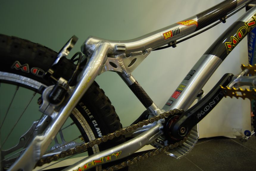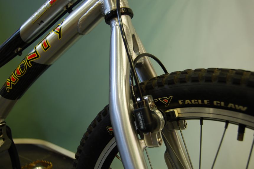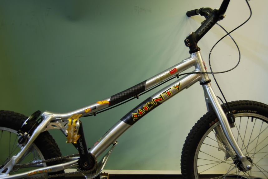 九成新的銀色MONTY 221PR, 經過整理換上一些全新的組件包括前油煞HS-33(後油煞也是HS-33), 輕量前叉及把手, 其他零組件也有變動, 全車已經精心升級及調校, 全車重量含踏板實測9.5公斤.