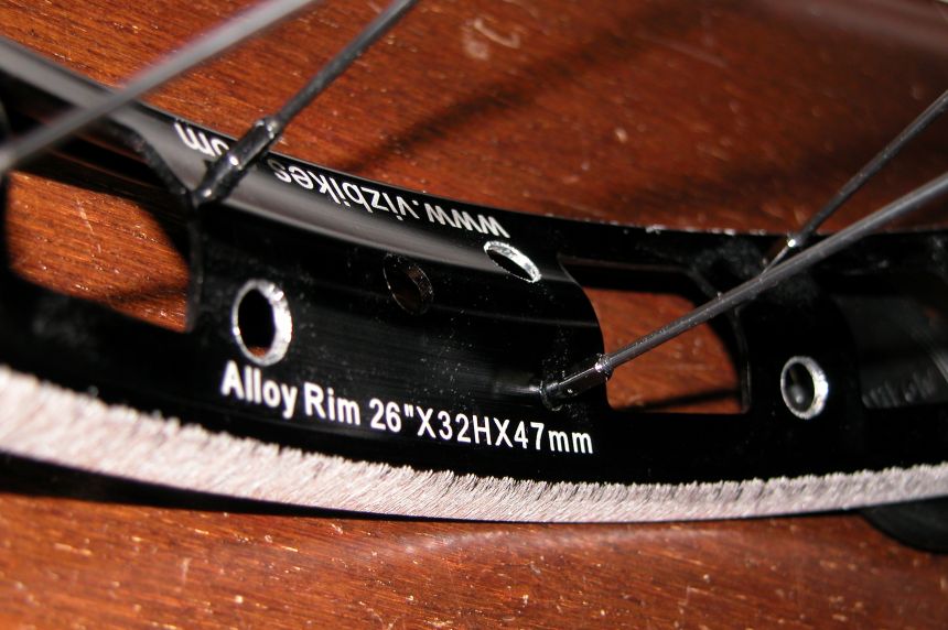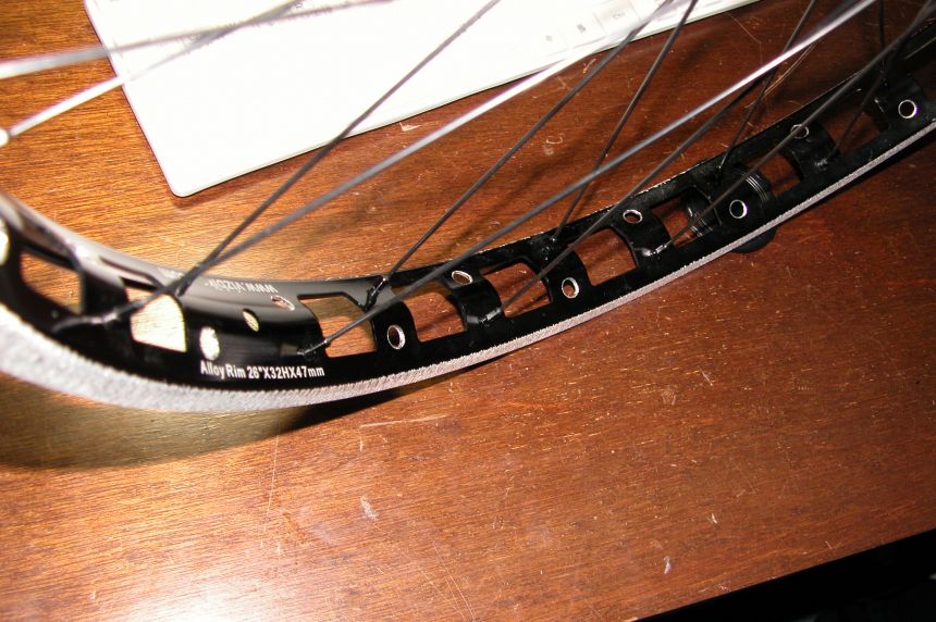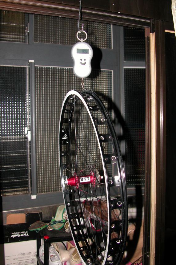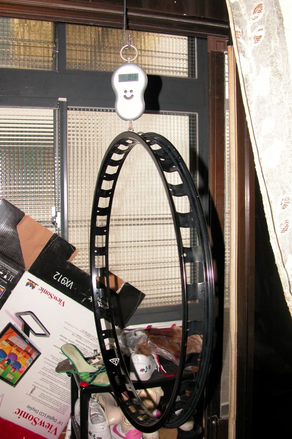 這個新框 26" 47mm 在未鑽洞下重量約580g. 而我舊的框 26" 42mm 鑽了洞是640g. 重量上差不多, 不過寬度的增加和它較為交錯的幅條, 整體上穩定很多.