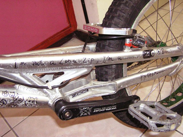 自從兩年多前我把Zoo!的貼紙撕掉後,很多人都不知道我騎的車是啥.... 而最近受到某片的啟發,讓我又浮現弄新塗裝的念頭,雖然我先前一直想要把車架重新上色,也許白色或金色,但最後都在繁雜的手續下放棄。