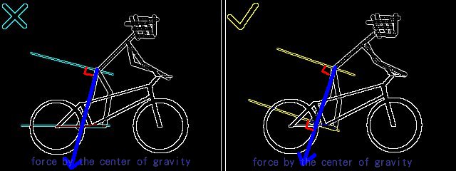 而右邊的姿勢會將重心稍微往前 , 而約落在正腳的位置 , 比BB 還低, 重心低穩定度就高 ,