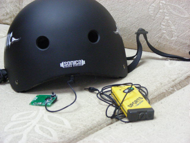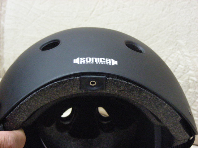 剛入手一頂美國帶回來的霧黑色極限安全帽, 除了質感相當好以外這帽子的外觀跟一般的 X GAME 安全帽看起來也差不多, 但這頂帽子後面有幾個字寫著 "sonica sound system", 字底下有一個音響插孔可以接線播放由mp3接過來的音樂, 帽子裡面可以看到保麗龍上有幾個洞, 裏面就是喇叭.