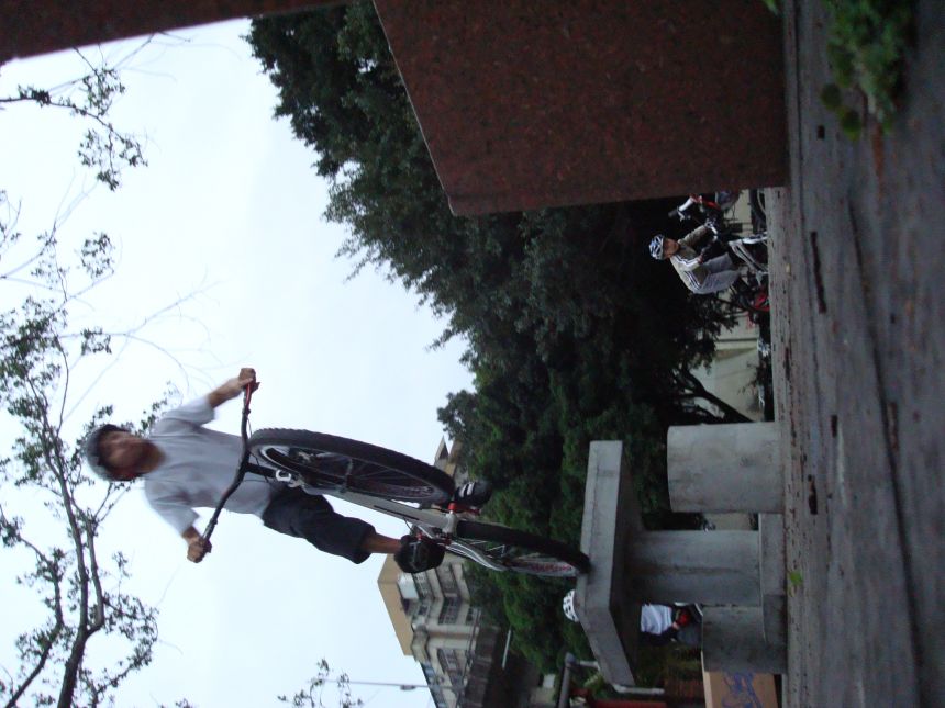 下午五點多的時候有一堆人在大稻埕練攀, 總共大概有20人左右的樣子, 其中有一票人包括孝權ˋ爾傑ˋㄚ良ˋ阿哲等是中途殺出去街攀再回來的, 真是很會玩, 老K現場還擺了一些小平台木條等道具, 雖然沒下雨但地上有點濕就是.