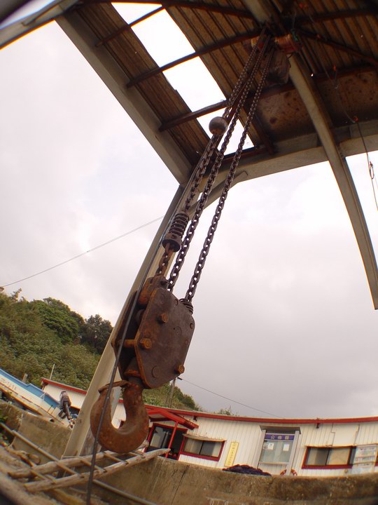 在港口, 海巡署的側邊, 有個卸貨區, 中間有個鬼怪的大勾子, 很像TRA常會來的地方...