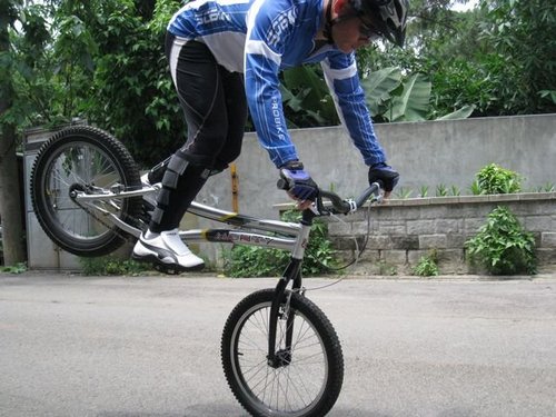 翹後輪本身沒有什麼用途, 但它是接下來一大堆動作的基本動作, 因此初學者必須將這動作練純熟.