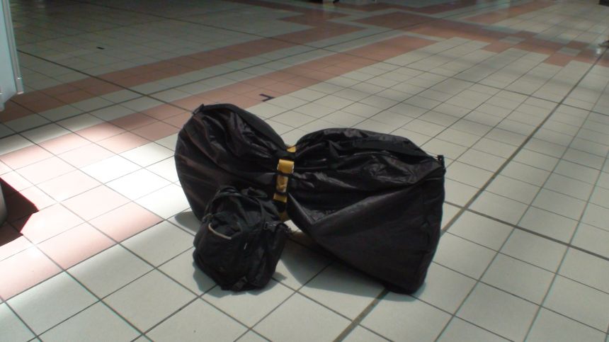包裝好後,一台車一個大包包,這個包包可以完美裝下攜車袋,裡面也有所有修車工具和隨身用行理包。