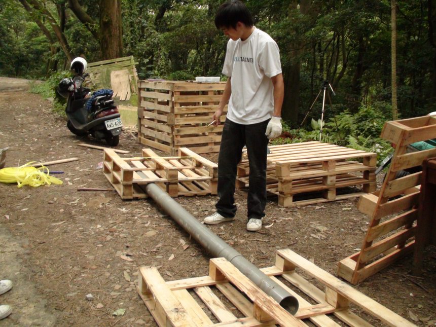 我把管子藏起來了,那個還可以變換你想要的長度,我把它縮到最短,上面蓋上棧板,這樣才不會被嫌雜人等弄斷。
