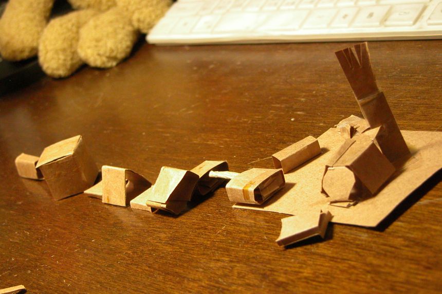 因為今天在想要怎麼計畫中福宮的道具,接下來要做什麼,要怎樣才可以設計好的路段,就正好讓我想到,拿起手邊牛皮紙和膠帶剪刀來做個模型吧!