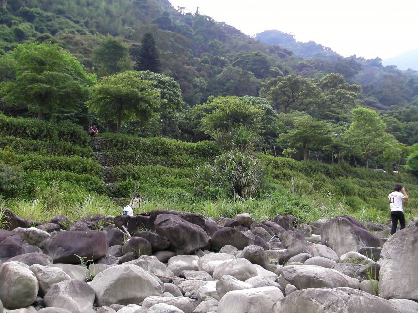 河床裏的乾石頭跟一般陸地上的石頭是不一樣的, 那些河床石看起來外表雖然一樣, 但石頭的表面實際上都附著一些青苔孢子MOSS, 遇到下雨或是被河水淹沒的時候, 青苔孢子立刻開始快速成長, 於是表面就變得滑溜無比.