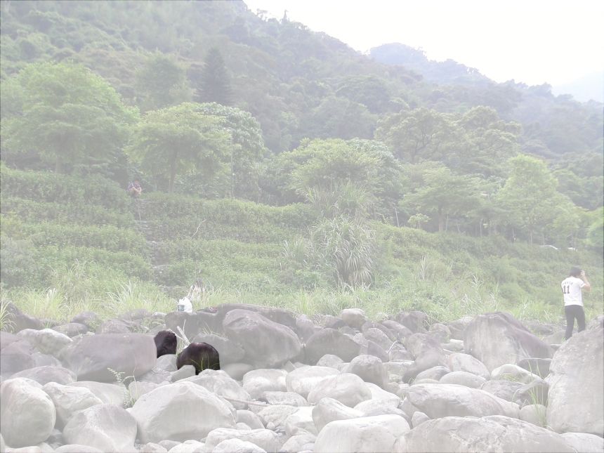 大家都匆匆忙忙的要把車和東西搬回去找個避雨的地方先避一壁,這時,我口中又說了一句話,"小心一點,不要摔倒",阿!過了三秒,我搬著車,踩著超滑的石頭,手剛把牽著的車子丟到旁邊,但落下速度極快,我的臉就被溪上的石頭給揍了。