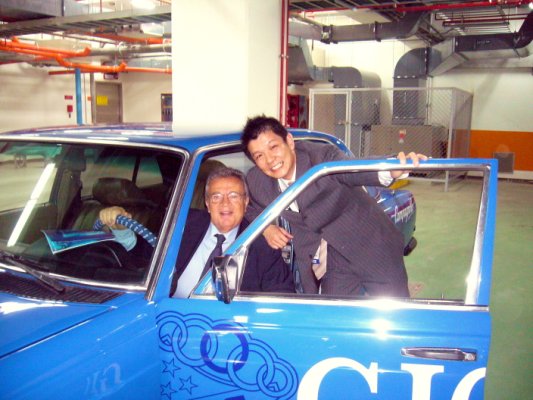 GIOS老兄來到台灣與薩姆公子簽名合照的畫面,台灣對GIOS是極度熱誠的連GIOS賓士支援車都有呢!