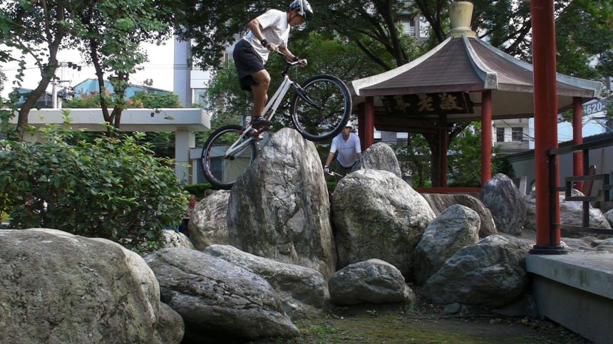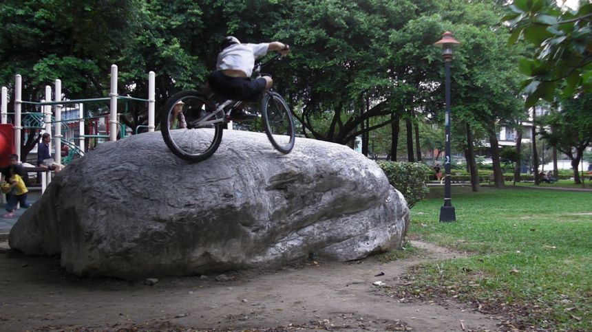 超低落的側跳,只是那石頭好滑喔!板橋最滑的石頭就是那顆,下次有興趣的人可以來玩看看。不過這個 tuck<還不錯, 很好看