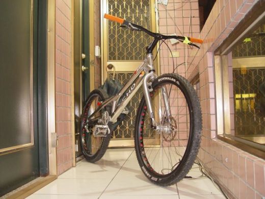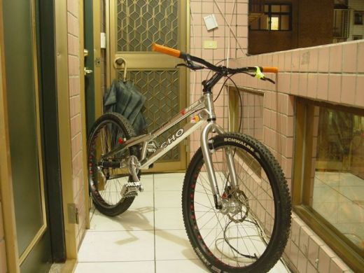 以前的Echo 7075 flat handle bar,為手把無上升,手握的高度與龍頭位置水平,但有9度的內彎。 騎乘時有種可以將車子貼近身體的感覺,但其點跳時手把的高度較低,約在腰上方三公分的位置,裝置在我的Zoo Python上,有種想要抬起前輪時不好拿捏左右重心的感覺。