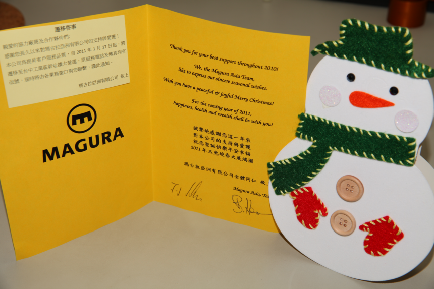 今天收到MAGURA亞洲總裁和總經理親筆簽名的耶誕卡...大家來接力貼貼收到的卡片,增加點過節氣氛...