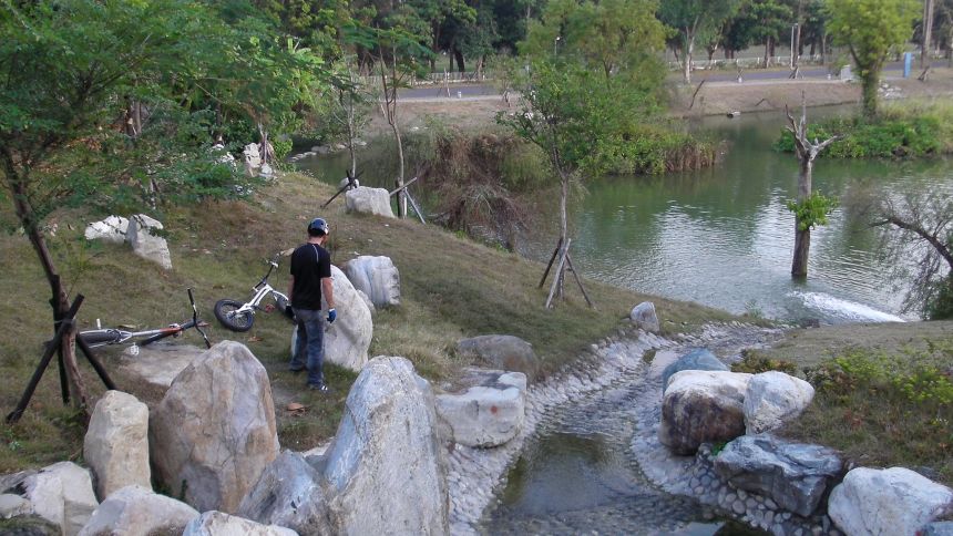 第一晚上和智偉借小車去愛河之心小騎了一下