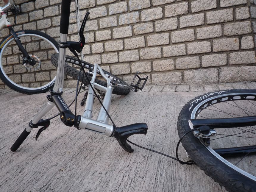 我之前也斷了一次前叉,當時買二手攀岩車附的是登山車廠牌硬叉,想說只有練基本動作,所以沒換攀岩車專門前叉,那次斷叉