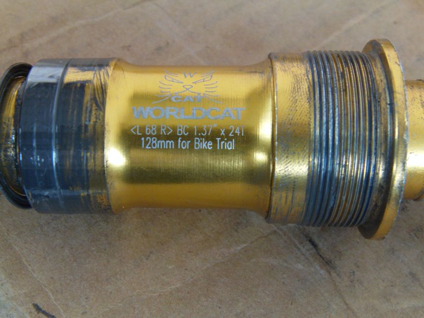 What's the dimensions of the worldcat bb? Is this an ISIS or a square tapered setup? you may need a spacer between the frame and the drive side bb cup. The non drive side shell is sticking out a lot more than it should though...