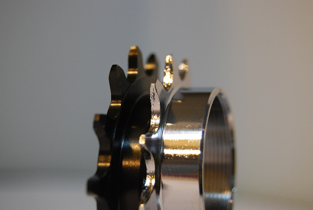 話說.如果用普通變速飛輪拆下的15T.用久過後.因為齒片薄.支撐點小.而造成棘輪座上會留下"咬痕"