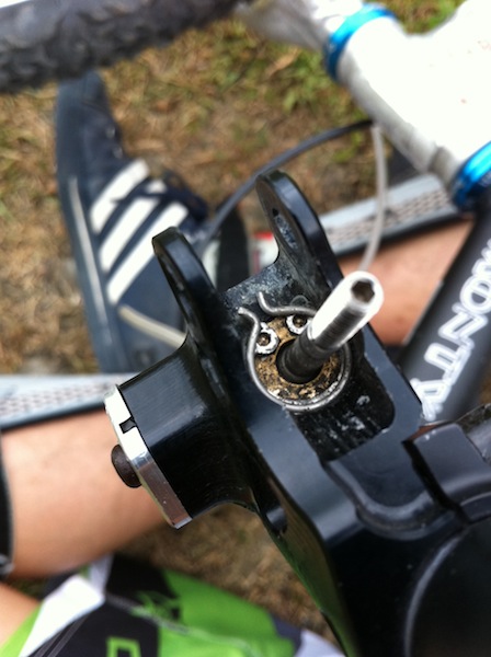 某日摔車摔到lever,方向是往外,所以lever內的墊圈都被拉移位,然後lever blade很翹且按不回去。