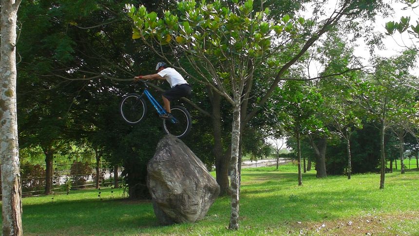 我形容這個地方跟平原沒兩樣,不是草皮就是矮山坡,實在是沒什麼東西可以給攀岩車騎,到處找找好不容易看到幾顆石頭,跳一跳就打包回台東囉。