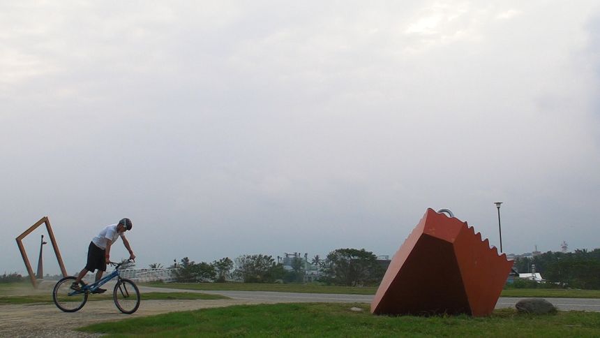來到台東濱海公園差不多接近四點,當地就是一個很大個框和一個奇形怪狀的坡浪台子,很快的騎完這兩用東西,就開始四處找有沒有其它別的地方可以騎。