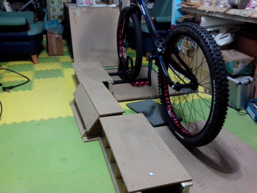 利用廢棄模具做了兩個16公分高的階梯,沒事就可以練習上下階梯的穩定度。