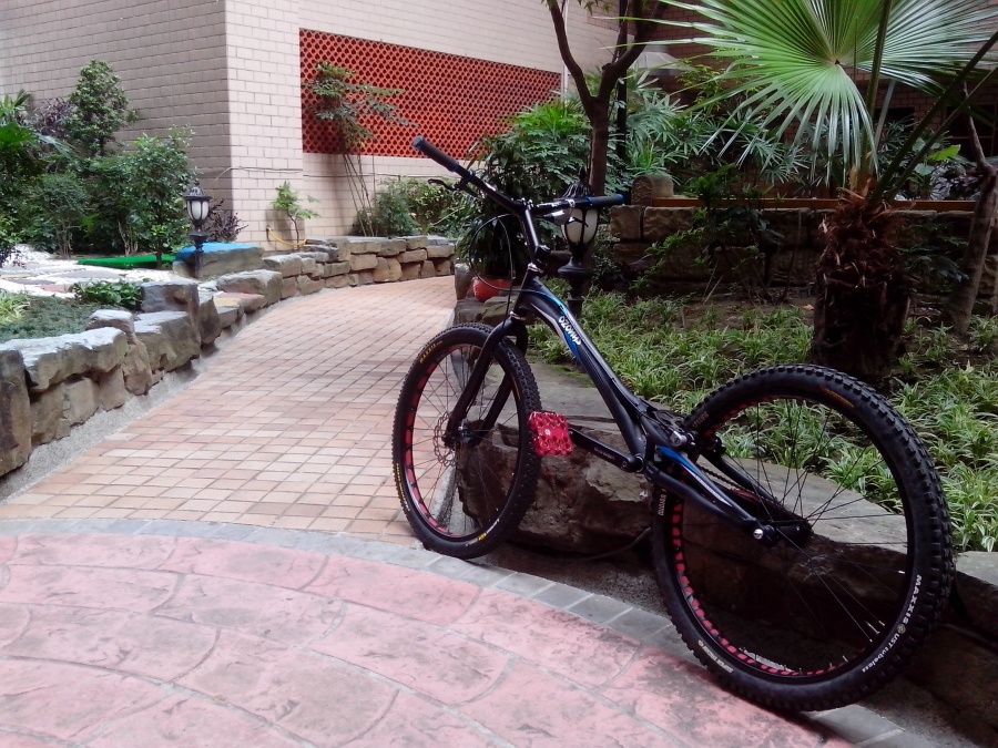 OMG, 這個場子超棒的, 有石頭可以爬. 只要鄰居不抱怨, 洪大應該下樓練, 我了解你想利用工作空檔練車的想法. 我也有在家裡練過一陣子, 跟在公園練完全不一樣...我喜歡公園的感覺!!
