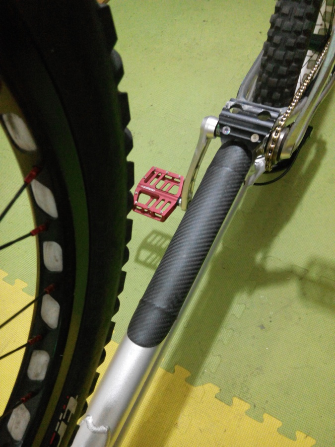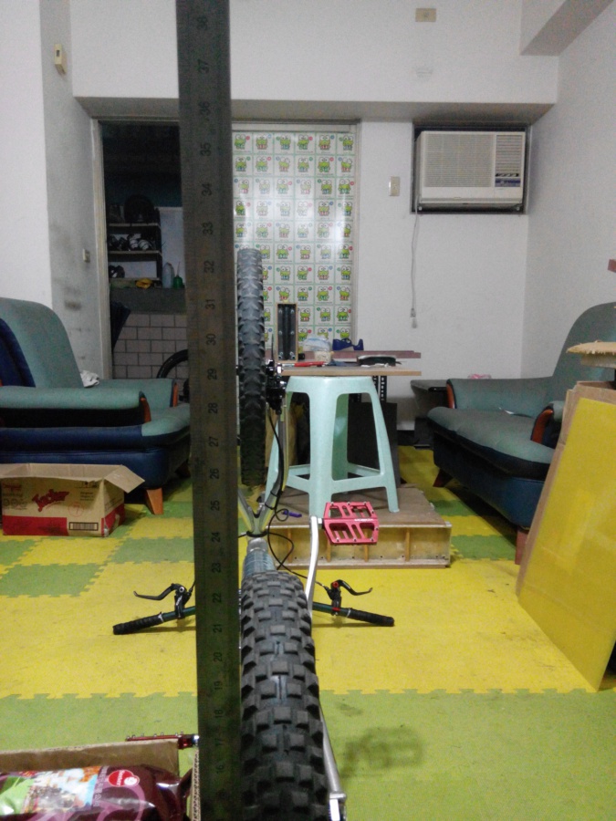 不過它歪的方向好像如果橋正的話輪子應該就直接黏到前叉上了(更歪),我看相片本身要呈現實際情況應該很有難度。